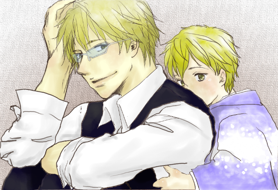 ええっとちっさい津軽が大人(おっさん風味)静雄にしがみつきです。